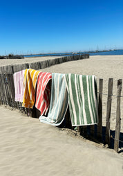 Découvrez notre gamme de serviettes rayées personnalisées pour enfant, qui se pare de jolis coloris !